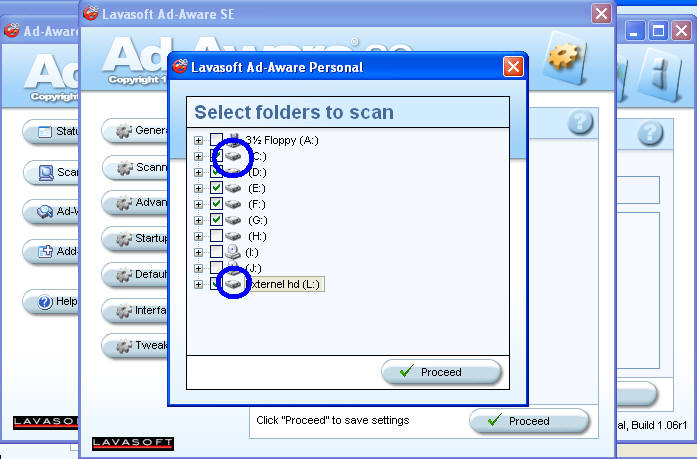 First, there are 4 programs that you need, (the versions next to the program name are the current versions as of this writing) Adaware-SE 1.06r1 - A newer version is out, the options are fewer, but it scans much faster and better Spybot: Search & Destroy-v1.4 WinPatrol-v0.99x If you have issues installing winpatrol please read their FAQ. They offer an alternate installer that is you in their FAQ (just look for it) HiJackThis (Direct download)-v1.97 If you are unable to run HiJackThis get This. After downloading the programs, install them (read the rest of the article before installing each one), do not scan yet! We want to make sure Adaware and Spybot: Search & Destroy are up to date. First, lets run Adaware. When Adaware starts it should ask you if you want to update your definitions. Make Sure you always update it. ![]() Click on "Check for updates now" When you click start you will be taken to this screen ![]() Click on "Use custom scanning options,” and make sure you have "Search for negligible risk entries" and "Search for low-rick threats" checked. Now click on "Customize, and click all the options you see in this next picture. ![]() Click on "Select drives & folders to scan" and make sure your HD is checked. Usually you will only have a C:, if you have more HDs check them (the icon for HDs are circled in blue). ![]() While scanning you will see a screen like this. ![]() When the scan is complete, you will see something like this. ---Sorry, no pics, you'll have to wait until I get some spies Just right-click on one of the items and click 'Select All' then remove. Sometimes (if your computer is in bad shape) you may not be able to get rid of everything, Adaware will ask if you want to schedule a "Boot Time Scan,” you should do it, then reboot right away! When your computer boots back up it'll start the scan again. It can take some time, but it's worth it. If it tells you that some items cannot be removed, write then down and hopefully they will turn up again later and be removed. Don't schedule another boot time scan, you will get the same results. Up next! SPYBOT: SEARCH & DESTROY: This is another great free program After you install it and run it'll ask you some questions, make sure you update it and backup your registry (you can never be too safe). After you have updated Spybot I recommend you close it and open it again, once open again check for updates. ![]() If you have problems updating, change the server (in the picture above it's "Safe Networking #1 (Europe)" After updating, click on "Immunize" and update it. Then click on "Search & Destroy" Click "Check for problems,” let the scan finish and then you will see something like this ![]() When the scan is done click "Fix selected problems". Sometimes if you have a lot to remove, it will take some time to remove everything. If Spybot says that some items cannot be removed, to the boot time scan (just like with Adaware). Next up, WinPatrol! YAY! This is a nifty little program, you can have it run the background and when Windows starts, but I personally think that's a waist of process and memory. After you install and run you'll see a little doggie in your system tray (that's where the clock and some icons are, usually at the bottom left of the screen), right click and tell WinPatrol not to Always Run. When you run WinPatrol, you will see a screen like this. ![]() Find items that don't need to be there... if you don't know what it is you probably need it. For example, in my picture above I don't want NeroFilterCheck to run at startup. So, I click it and then on remove. Then you can click on the IE Helpers, ![]() In here it's tricky, but if you know what it is, and don't need it, kill it. Or do what I recommend, use Firefox. Remember when you are done running WinPatrol, to right click on the little doggie again, and close it. Lastly, we run HiJackThis! When you get it (I don't think it has an installer yet, so just make a directory somewhere called HiJackThis or whatever you want to call it), then run it. When you run it, click scan, you will see something like this ![]() You can click items and remove them, most people don't know what needs to be removed, so you can save a log file and goto http://www.hijackthis.de/ Which can analyses your log file and give you suggestions on what to remove. If you’re still worried about it find a forum online to put your log file and have someone check it for you. Now, there are 2 more ways of removing spyware and speeding up your computer, one way is to run 'msconfig', all windows except 2000 have this. It has an area where you can remove items from start up. Basically what WinPatrol can do, but maybe it will have someting additional. The last thing I suggest (besides a good Virus Scanner, like Avast!), if you can do a registry edit. Remember, your registry is NOT a place you want to play in, you can make your computer stop working if you remove the wrong thing. So if you want to continue read this VERY carefully!!! Click "Start" --> "Run," type in "regedit". A box will come up, hit F3 to search, type in "runonce" to have searched. This search can take a little while, when it finds runonce it'll stop, if on the left side it has selected a folder called 'runonce' right above it will be a directory called 'run', click on it, everything listed there runs at startup. You can kill items out that way. After you check that directory, hit F3 until it finds another 'runonce' directory with a 'run' right above it. I suppose I didn't do a very good job explaining that, but remember, registry edits are at your own risk. Well That's all I have for now, someday I'll update it and add better screen shots or something. For now, just live with it. |
